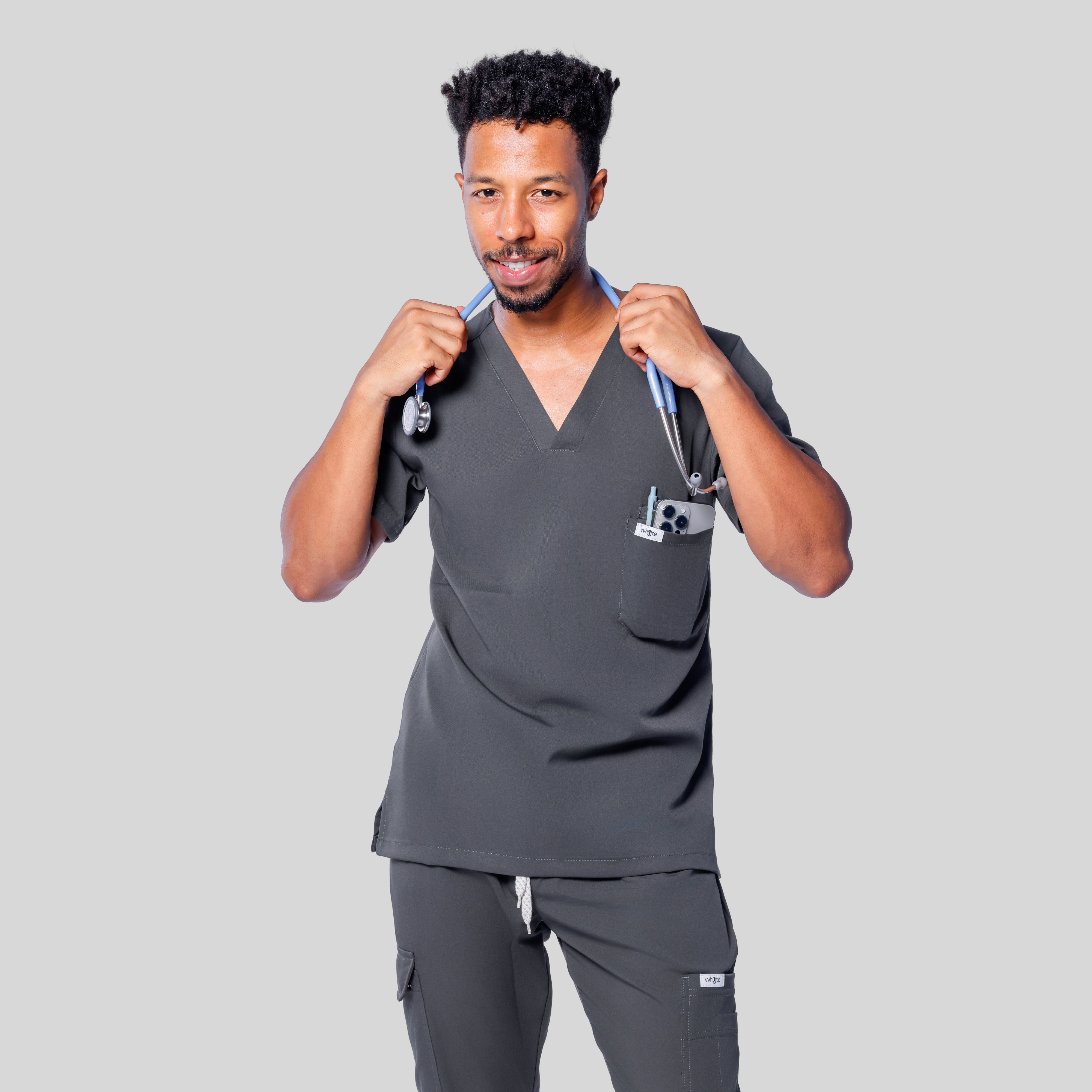 Le haut de pyjama de bloc col V DEREK est un essentiel repensé avec précision : coupe nette, tissu intelligent, silhouette affûtée.